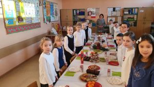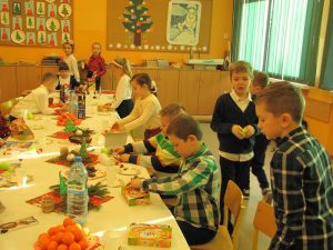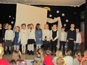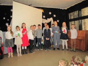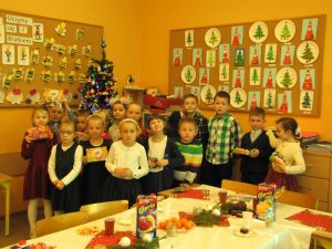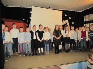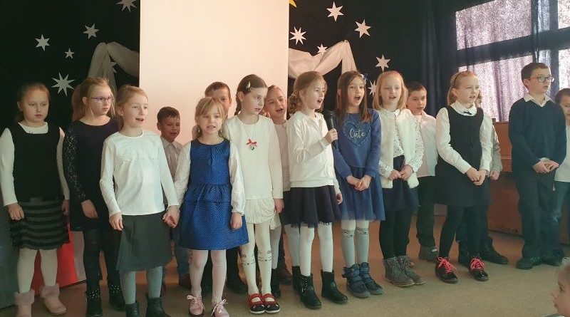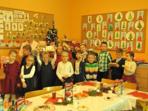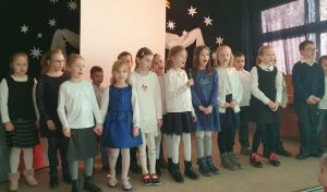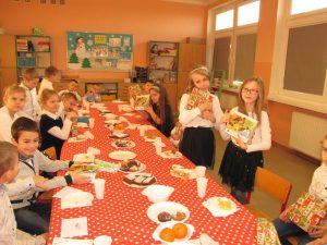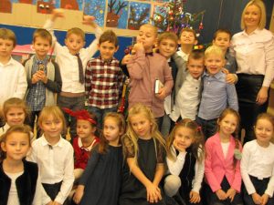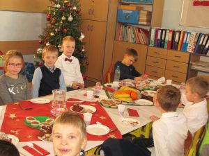 W ostatni dzień przed przerwą świąteczną uczniowie klas I-III przyszli do szkoły w odświętnych strojach. W klasach czekały na nich pięknie udekorowane i zastawione smakołykami stoły, które przygotowali rodzice. Uczniowie w świątecznych nastrojach składali sobie życzenia oraz dzielili się opłatkiem. W niektórych klasach Gwiazdor osobiście wręczał prezenty, w pozostałych dzieci znalazły prezenty pod choinką. Po świętowaniu w klasach  uczniowie spotkali się w stołówce na „Koncercie kolęd i piosenek świątecznych”. Każda klasa z dużym zaangażowaniem zaśpiewała na scenie przygotowaną  kolędę lub piosenkę świąteczną. Na koniec koncertu uczniowie wspólnie zaśpiewali trzy kolędy. Następnie w klasach słuchali świątecznych opowiadań i oglądali filmy o tematyce świątecznej. Po wspólnym świętowaniu uczniowie rozeszli się do domów, aby wrócić w nowym roku 2020 w pełni sił i z nową energią do pracy i do nauki.