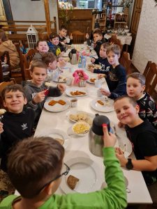 6 grudnia, w Mikołajki wszystkie klasy pierwsze oraz klasa 3b wybrały się na wycieczkę – warsztaty organizowane w gospodarstwie agroturystycznym „Ranczo w dolinie”. Był to wspaniały czas wypełniony kreatywną pracą nad ozdobami świątecznymi jak również wspólnie spędzonymi chwilami przy robieniu pierników. Dzieci również spędziły czas biegając po puszystym śniegu i odwiedzając zwierzęta żyjące w gospodarstwie. Dla klas pierwszych była to pierwsza wycieczka szkolna, którą możemy uznać za bardzo udaną
