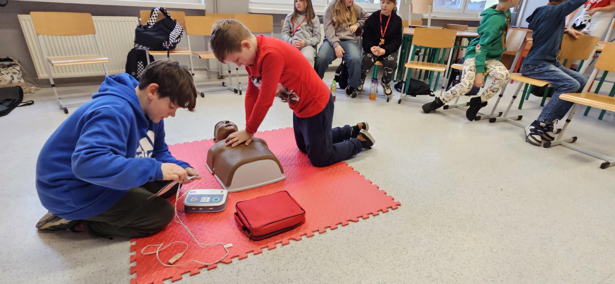 Warsztaty cieszyły się dużym zainteresowaniem, a uczniowie uczestniczyli w nich z zaangażowaniem 💪, co pozwoliło im na zdobycie cennych umiejętności, które mogą pomóc w ratowaniu życia w przyszłości ❤️‍🩹. W takich samych warsztatach uczestniczyli w minionych tygodniach również uczniowie klas VI-VIII, natomiast na 19 grudnia br. zaplanowano zajęcia dla klas V 📅.