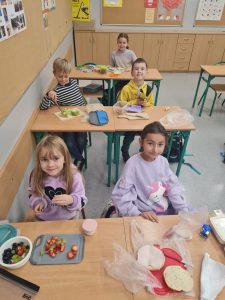 Pierwszego dnia postawiliśmy na kulinarną kreatywność – dzieci przygotowały pyszne kanapki, pasty i sałatki 🥗🥪. Nie zabrakło także filmowych emocji – nasze klasy zamieniły się w prawdziwe sale kinowe 🎬, a dodatkowo rozegraliśmy turniej gier planszowych 🎲, który dostarczył mnóstwo śmiechu i emocji.