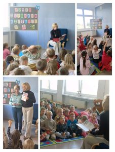 Uczniowie klas pierwszych mieli niezwykłą przyjemność wysłuchać fragmentów książki o przygodach cioci Jadzi, które przeczytała im pani dyrektor Magdalena Zieleńkiewicz. 👦👧