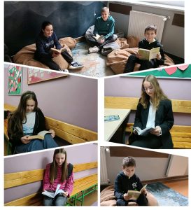 W klasach drugich i trzecich rolę lektorów przejęli starsi uczniowie, a radość czytania udzielała się wszystkim. 📚 W klasach 4–8 podczas godzin wychowawczych nauczyciele dzielili się swoimi ulubionymi książkami, inspirując młodzież do własnych literackich poszukiwań.