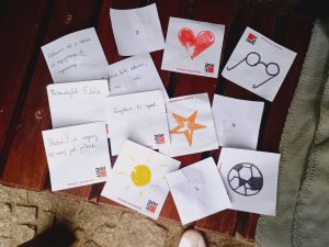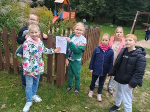 Kolejnym etapem wycieczki była gra terenowa 🎯. Uczniowie zostali podzieleni na sześcioosobowe zespoły, w których znalazło się po dwóch przedstawicieli z każdej klasy trzeciej. Każda grupa miała za zadanie odnaleźć ukryte tropy 🔍, wykonać przygotowane zadania oraz zebrać porozrzucane litery 🔠, z których należało ułożyć hasło.