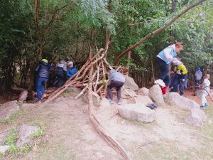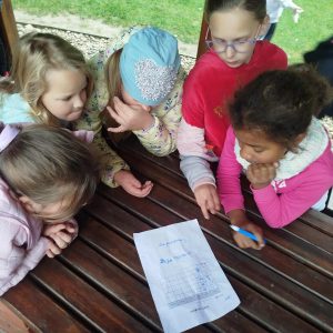Podczas pobytu w lesie uczniowie mieli okazję do swobodnych zabaw 🌲 – dużym zainteresowaniem cieszyło się budowanie szałasów z gałęzi 🪵. Wspólne działania pozwoliły dzieciom ćwiczyć pomysłowość 💡, cierpliwość i współdziałanie w grupie 👥.