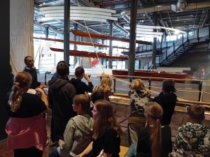 Kolejnym punktem programu było Muzeum Techniki, gdzie ruszyliśmy do „domku Baby Jagi”, wykonywaliśmy doświadczenia z dźwiękiem, prądem i powietrzem . W części historycznej oglądaliśmy łodzie, statki, samoloty, samochody i pociągi – żal było wychodzić!