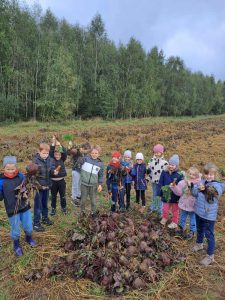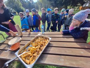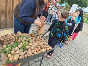 Klasa 1b i 1c wybrały się we wtorek na wycieczkę do Zagrody Szczęśliwych Zwierząt w Białegach. Nie zabrakło tam niesamowitych wrażeń. Uczniowie brali udział w warsztatach plastycznych, aktywnie uczestniczyli też w jesiennych wykopkach. Dzieci zapoznały się z uprawami na polu, rozwiązywały zagadki dotyczące wzrostu i uprawy roślin. Dużą atrakcją dla wszystkich była również przejażdżka meleksem, zwiedzanie zagrody i zapoznanie ze zwierzętami zamieszkującymi gospodarstwo. Chętni mogli przećwiczyć dojenie krowy na bardzo realistycznym modelu zwierzęcia. Na zakończenie wspólnej przygody czekał na dzieci poczęstunek z pieczonych ziemniaków. To był dzień pełen wrażeń, który z pewnością zostanie w pamięci na bardzo długo.