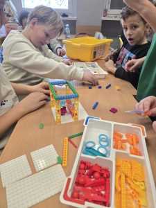 Podczas zajęć uczniowie badali, gdzie kryje się woda 💦. Wykonywali doświadczenia związane z obiegiem wody w przyrodzie, analizowali potrzebę zbierania deszczówki i poznawali rozwiązania zastosowane w naszej szkole. Dzieci zaprojektowały również własne systemy gromadzenia wody, a nawet napisały program, który ożywił ich konstrukcje 🤖.