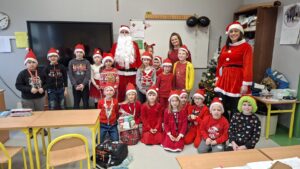 W piątek, 5 grudnia br., uczniów naszej szkoły odwiedził św. Mikołaj, który – jak co roku – przybył do nas w pośpiechu z dalekiej północy, w towarzystwie swojej rozświetlonej uśmiechami świty Śnieżynek. Jego pojawienie się wywołało wielkie poruszenie i prawdziwą falę radości. Zaskoczeni, ale i niezwykle uradowani uczniowie zostali obdarowani słodkimi upominkami.