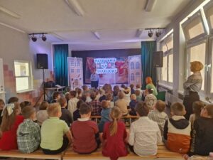 Uroczystość uświetniło przedstawienie przygotowane przez starszych kolegów i koleżanki z kółka teatralnego, Było zabawnie, ciekawie i bardzo wesoło – a młodzi aktorzy udowodnili, że na scenie naprawdę może dziać się magia. 🎭📖